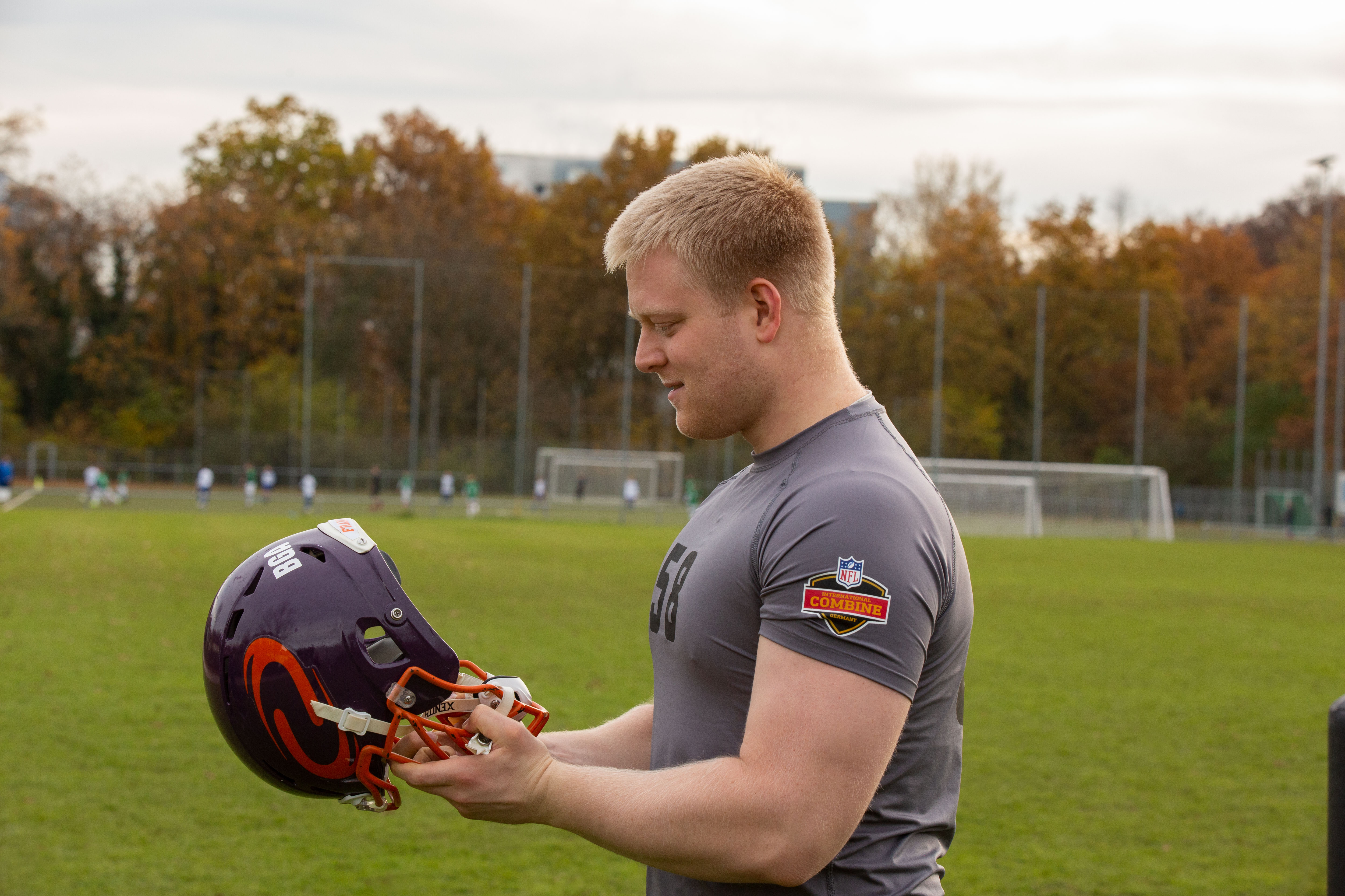 Der „NFL International Combine“ wird von der Nordamerikanischen Profiliga der „National Football League“ kurz „NFL“ ausgerichtet und findet jedes Jahr in einem anderen Land statt. Dieses Jahr zum ersten Mal in Deutschland. Bei dem „Combine“ geht es darum, in verschiedenen Aufgaben Athletik und Kraft unter Beweis zu stellen aber auch das footballerische Können wird in einer Reihe von Übungen getestet. Am Ende des „Combines“ entscheiden dann Talentsucher und Trainer aus Amerika, wer durch die Darstellung seiner Fähigkeiten einen Platz im „NFL Pathway Program“ verdient hat. In diesem Programm dürfen dann fünf ausgewählte Spieler aus der ganzen Welt monatelang in Florida trainieren, um dann in Amerika ihr neuerworbenes Können und Wissen wieder in einem „Combine“ vor Talentsuchern der 32 Teams aus der „NFL“ zu zeigen. Wenn man einen der Teamscouts beeindruckt, besteht die Chance, einen Profivertrag zu erhalten. Von dem „NFL Pathway Program“ profitierten unter anderem bereits Moritz Böhringer (Cincinnati Bengals), Christopher Ezeala (Baltimore Ravens) und Jakob Johnson, der bei den New England Patriots spielt. Alles einst „GFL“ (German Football League) Spieler, welche durch den Combine und das Trainingslager in Amerika den Sprung in die „NFL“ schafften. Ein Traum, den auch Kai Wullbrandt hat.